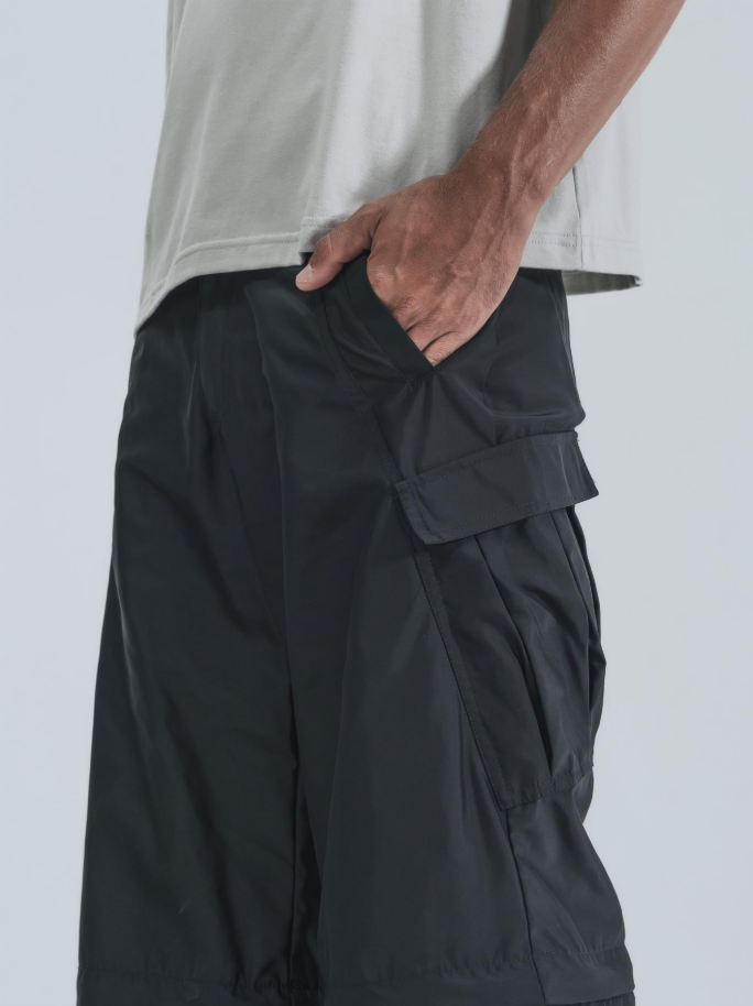 Lo que diferencia al Pantalón Eureka – Luxo es su capacidad de transformarse fácilmente en bermuda, ofreciendo dos estilos en una sola prenda. Tanto la versión bermuda como el pantalón presentan un corte oversize o baggy, ideal para quienes buscan un look relajado y a la moda, sin perder libertad de movimiento.